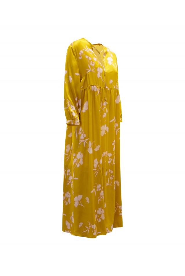 ONE DD-0156-0112 YELLOW AND PINK VISCOSE MIDI DRESS, product code DD-0156-0112 YELLOW AND PINK, color YELLOW AND PINK, material VISCOSE, season SS24