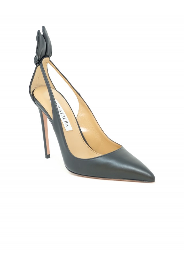 AQUAZZURA DENHIGP0-NAP-000 BLACK LEATHER BOW TIE PUMP 105, product code DENHIGP0-NAP-000, style name BOW TIE PUMP 105, color BLACK, material LEATHER, heel 105 MM, season CARRY OVER