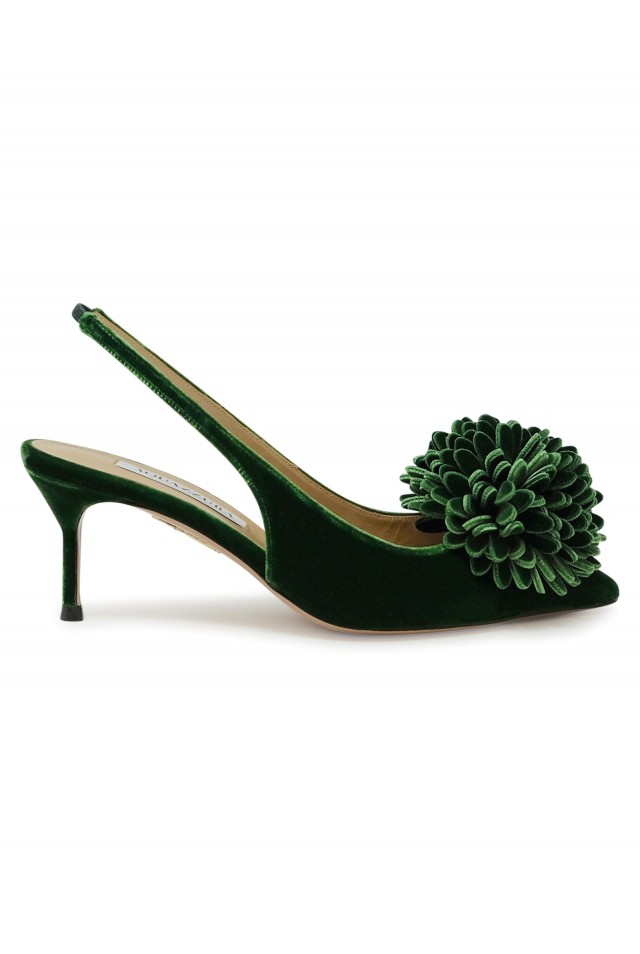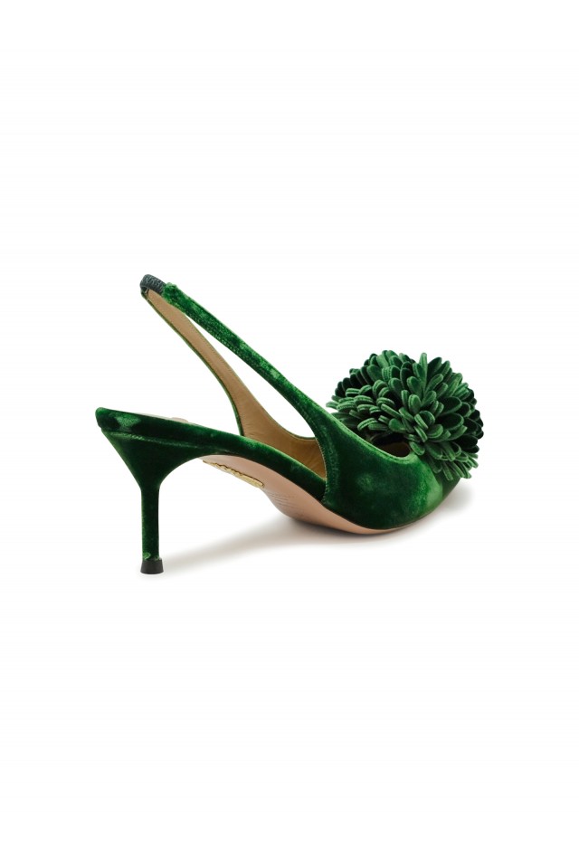 AQUAZZURA CTIMIDL0-VEL-MCH GREEN VELVET COUTURIER SLING 65, product code VBTHIGP0-VEL-MCH, style name COUTURIER SLING 65, color MALACHITE GREEN, material VELVET, heel 65 MM, season FW24