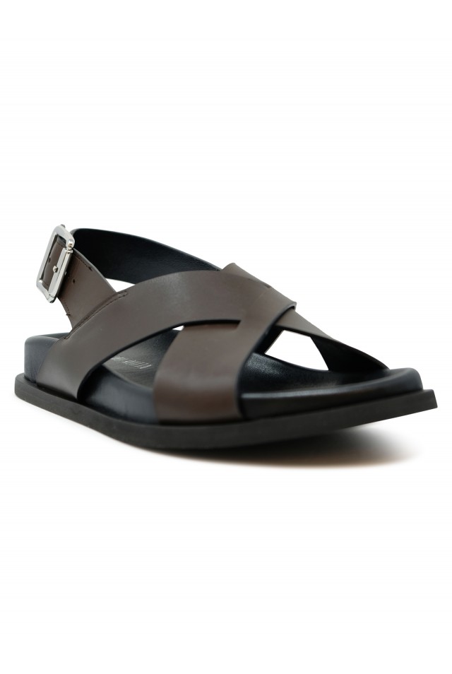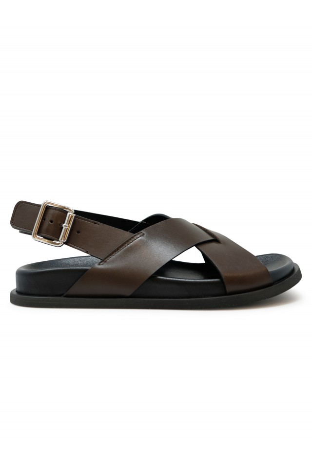 GUGLIELMO ROTTA 7578 BROWN LEATHER TWILL SANDAL, product code 7578, style name TWILL RANCH, color BROWN, material LEATHER, season SS26