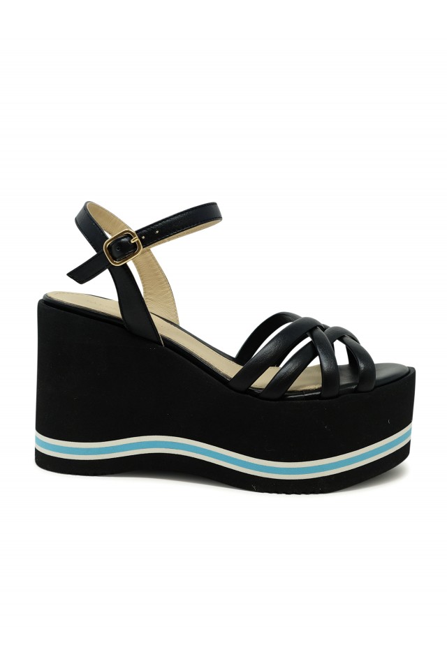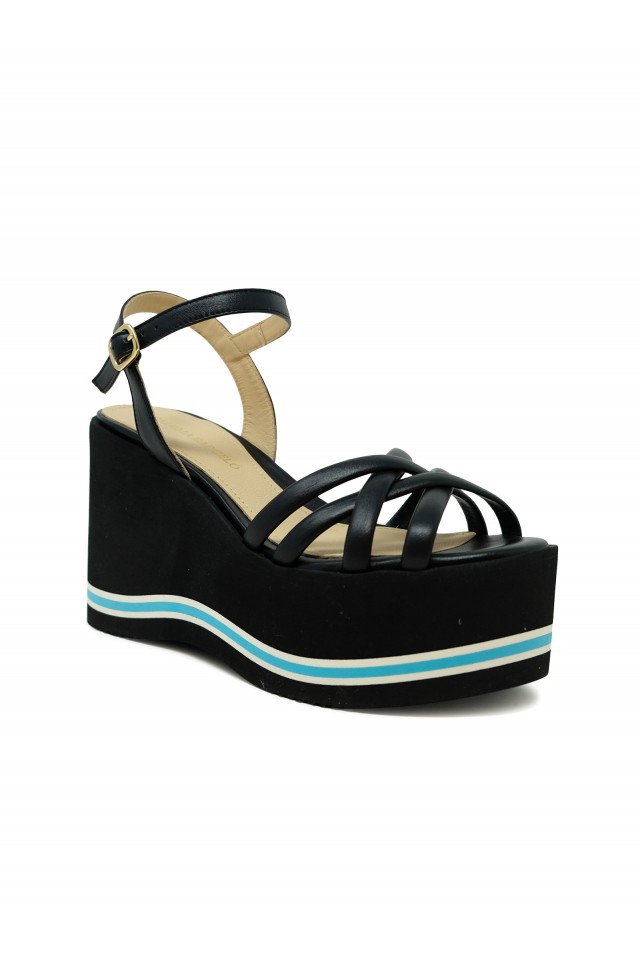 PALOMA BARCELO 24-1022 BLACK LEATHER LIOBA WEDGE SANDALS, product code 24-1022, style name LIOBA, color BLACK, material LEATHER, wedge heel 100 MM, season SS24