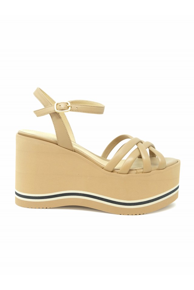 PALOMA BARCELO 24-1022 BROWN LEATHER LIOBA WEDGE SANDALS, product code 24-1022, style name LIOBA, color BEIGE, material LEATHER, wedge heel 100 MM, season SS24
