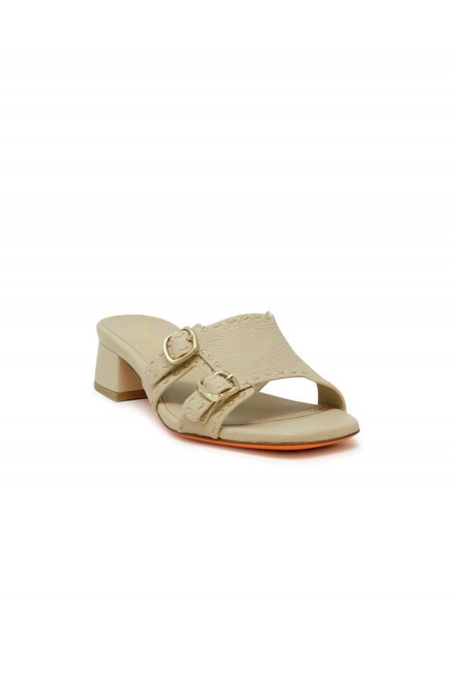 SANTONI WHVC71647HA2TWKAP10 BEIGE LEATHER BACKLESS SANDAL, product code WHVC71647HA2TWKAP10, color BEIGE, material LEATHER, heel 50 mm, season SS25