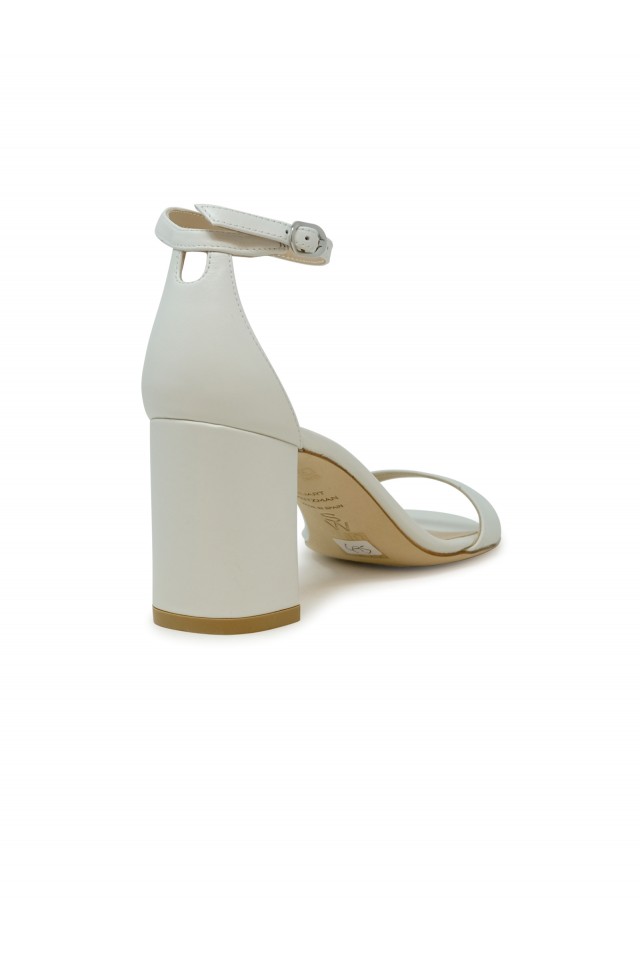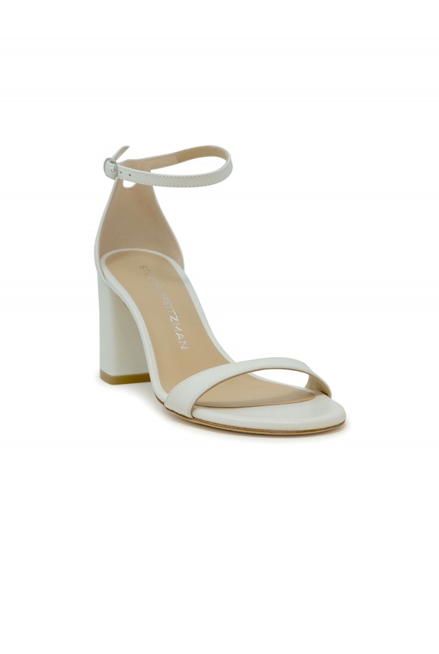 STUART WEITZMAN SK305 WHITE LEATHER NUDIST 75 BLOCK SANDALS, product code SK305, style name NUDIST, color WHITE, material LEATHER, heel 75 MM, season SS25