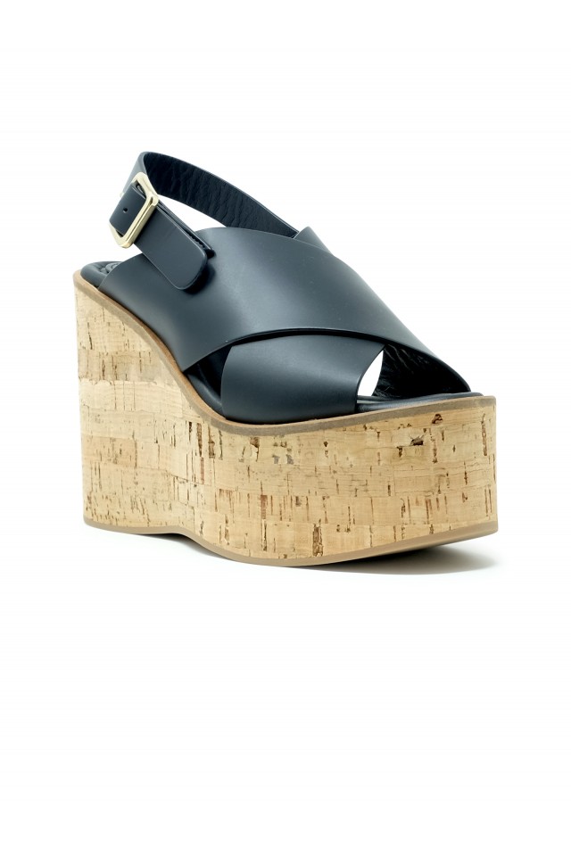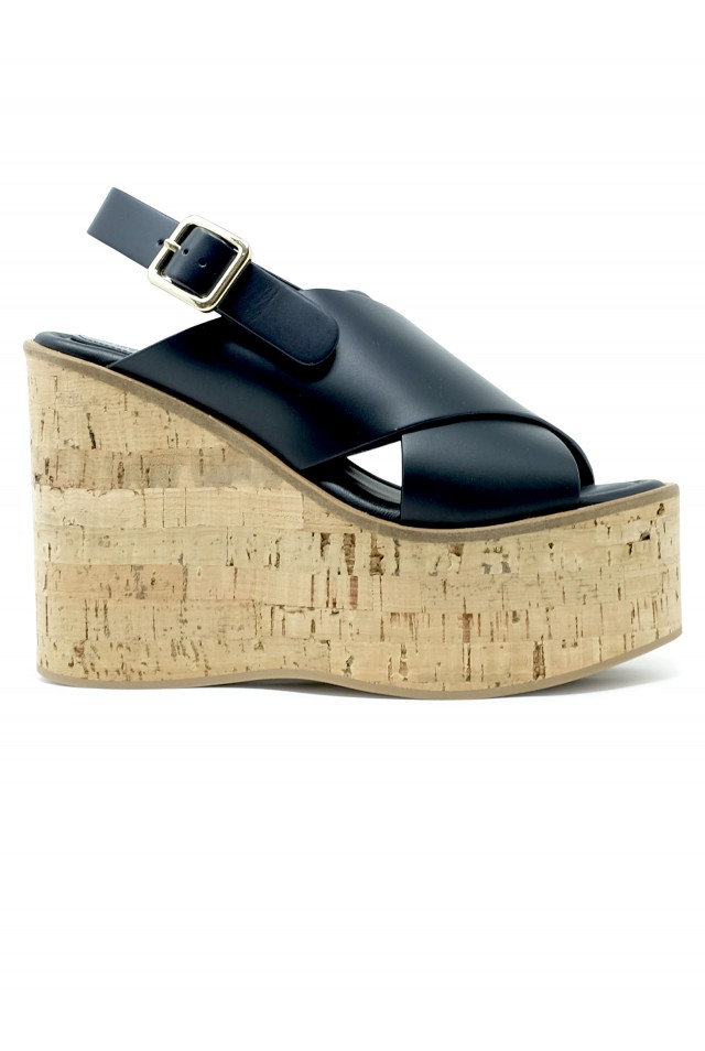 PALOMA BARCELO 26-3001 BLACK LEATHER BEGONIA WEDGE SANDALS, product code 26-3001, style name BEGONIA, color BLACK, material LEATHER, wedge heel 100 MM, season SS25