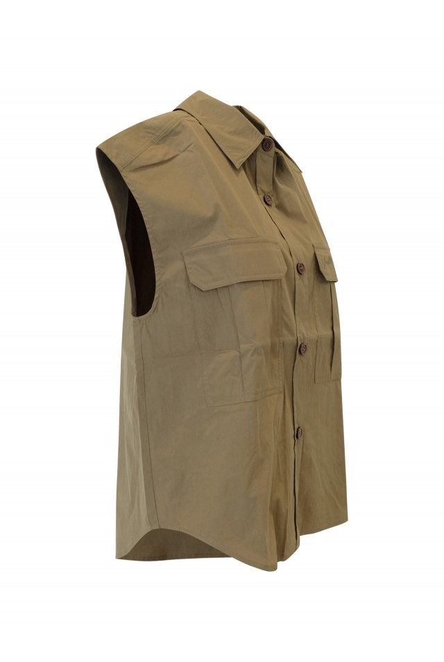 PAROSH D311667 007 NINJA GREEN OLIVE NYLON/COTTON SHIRT, product code D311667 007, style name NINJA, color GREEN OLIVE, material NYLON/COTTON, season SS25