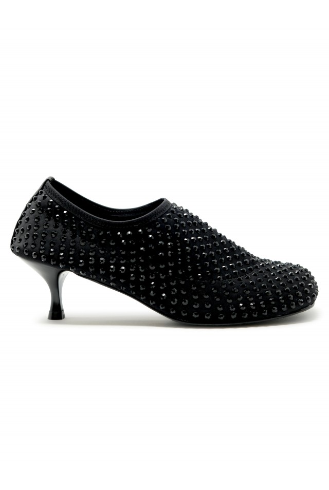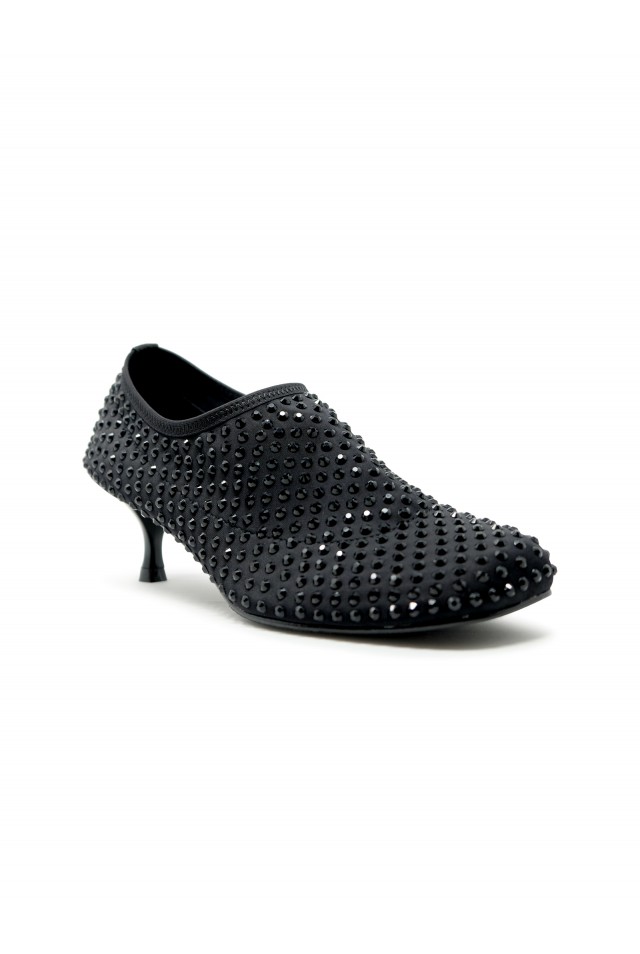 ELENA IACHI R19 BLACK LEATHER/GLITTER SHOES, product code R19, color BLACK, material LEATHER/GLITTER, heel 5 cm, season FW25